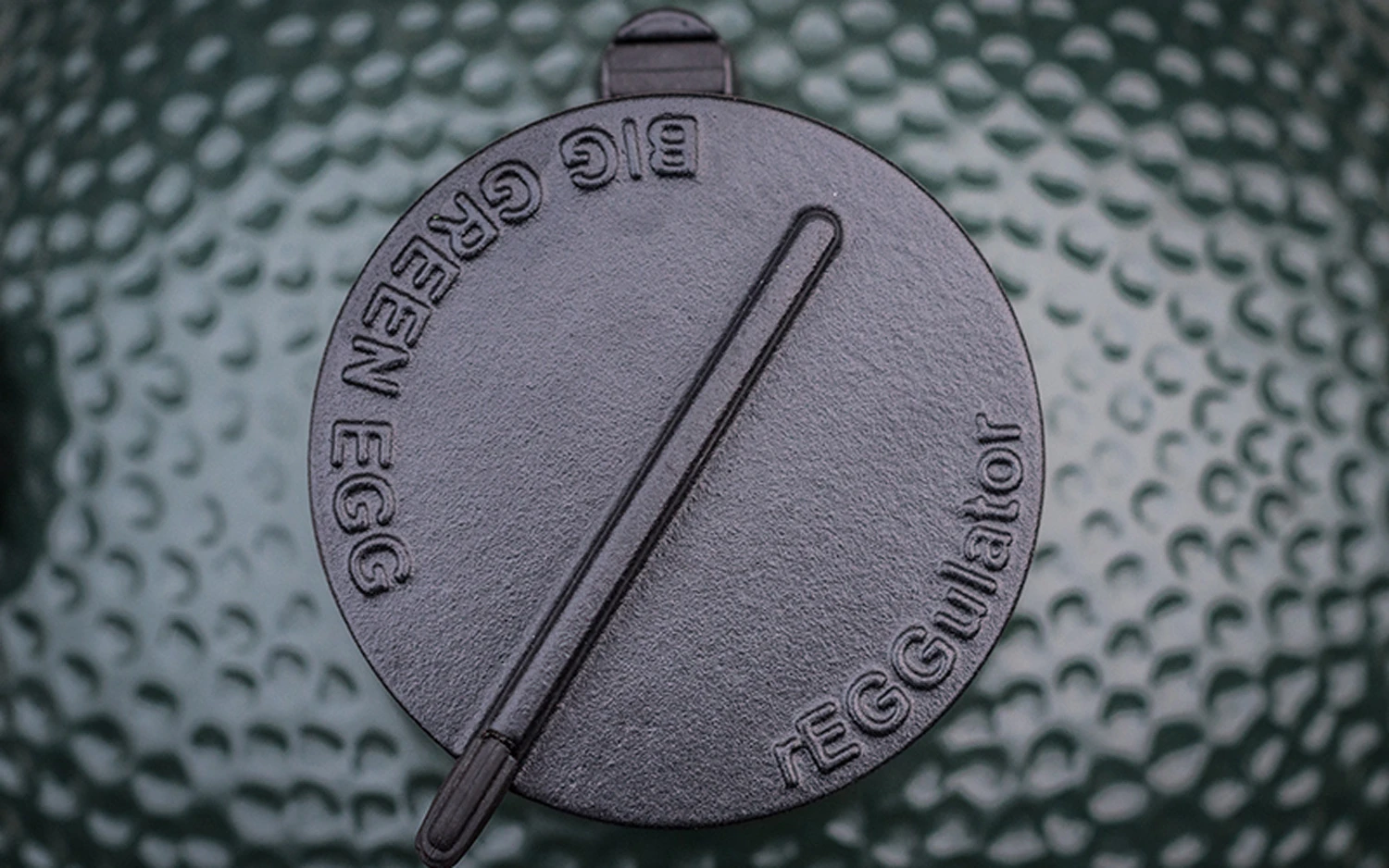 Das Big Green Egg patentierte Deckelventil aus Gusseisen der rEGGulator. Gerade der rEGGulator ist eines der wichtigsten Bauteile an Ihrem Egg. Denn nur so erhalten Sie die Möglichkeit einer sehr genauen Temperaturkontrolle und einer präzisen Regulierung der Abluft.