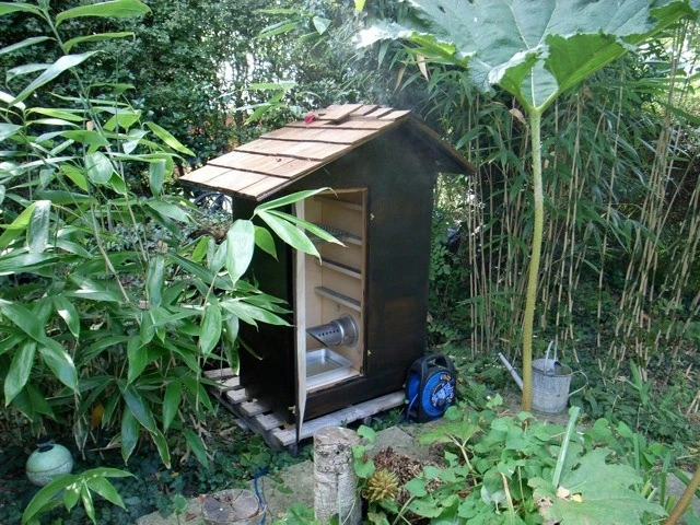 Die Manschette wird an einer Aussenwand befestigt, während der Generator ausserhalb bleibt. Passend hierzu finden Sie unten in den PDF Downloads ein Blueprint einer selbstgebauten Räucherkammer.