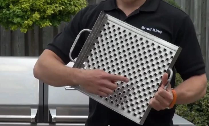 Damit Shrimps, Garnelen oder Gemüse trotzdem das typische Grillaroma erhalten wurde der Topper entwickelt. Er besitzt sehr viele, kleine Löcher, die Hitze durchlassen, Saft ableiten und darüberhinaus sogar noch für ein tolles Branding sorgen. Hierfür wurden bewusst nicht einfach Löcher in den Broil King Topper gestanzt, sondern kleine, quadratische Auflageflächen für schöne Grillmarkierungen geschaffen.