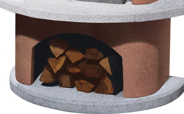 Nur die Bauteile aus Feuerbeton kommen mit Glut und Flammen in Berührung. Eine doppelwandige Bauweise sorgt dabei für Sicherheit, da zwischen Feuerraum und Außenschale Luft zirkulieren kann.