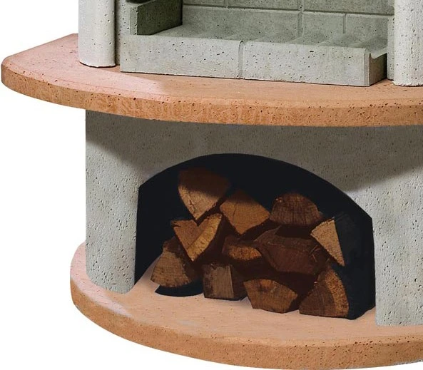 Nur die Bauteile aus Feuerbeton kommen mit Glut und Flammen in Berührung. Eine doppelwandige Bauweise sorgt dabei für Sicherheit, da zwischen Feuerraum und Außenschale Luft zirkulieren kann.