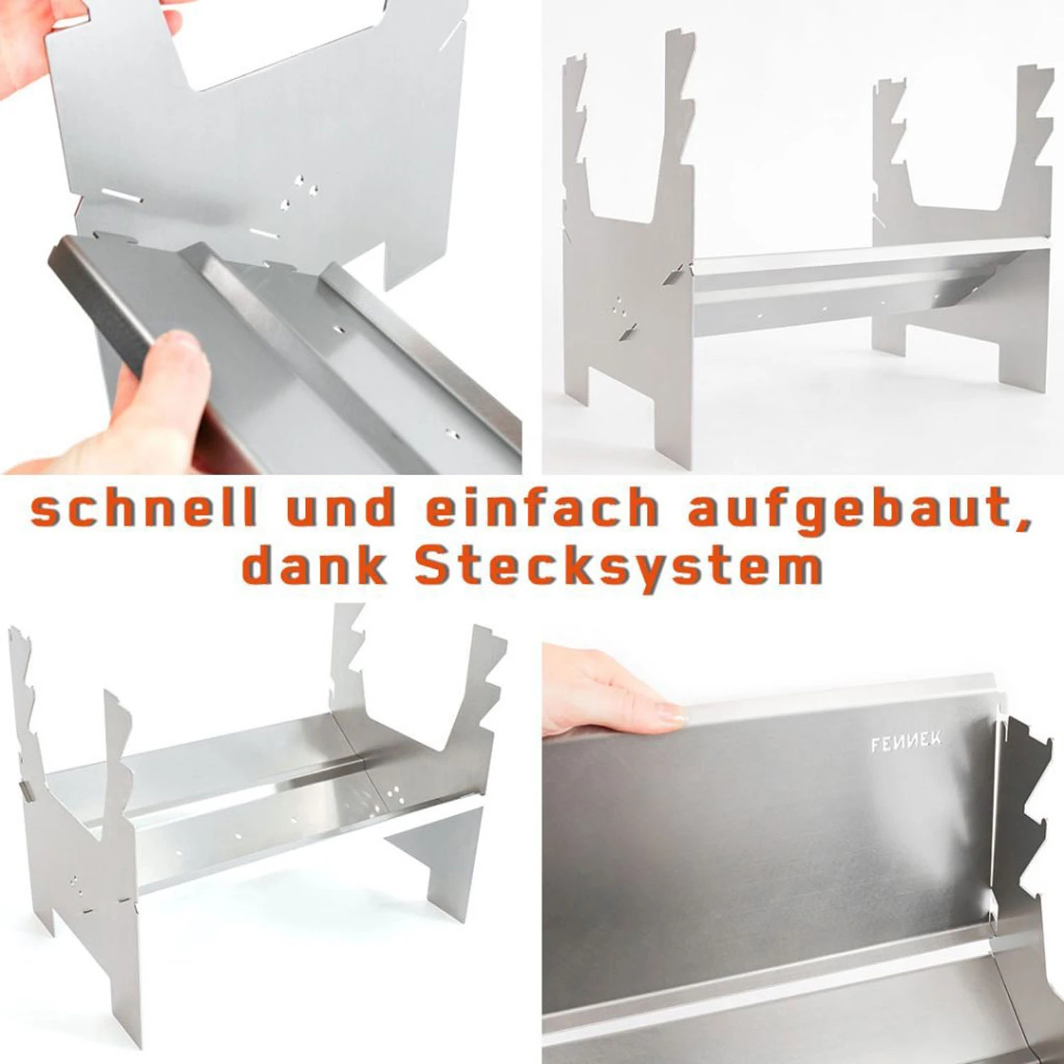 Ebenfalls wie sein kleiner Bruder ist der Grill im demontierten Zustand nicht viel größer als ein Notebook und kann perfekt für unterwegs einfach im Rucksack verstaut werden. So bleibt Ihnen auch bei Ihrem Gepäck viel Platz zur Verfügung und es müssen keine schweren Lasten getragen werden. Durch diese Eigenschaft macht es den Fennek Grill 2.0 zum idealen Grill für jeden Ort, jeden Grillmeister und jede Gelegenheit.