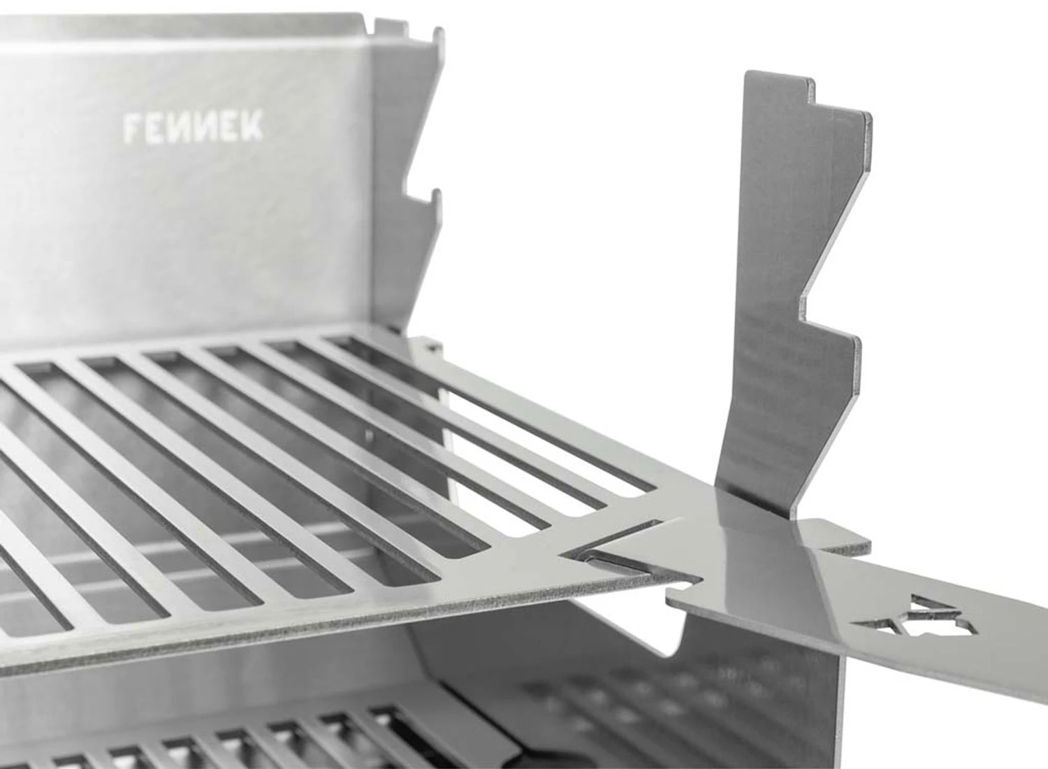 Durch das absolut durchdachte System des Grills wird eine 3-fache Höhenverstellung des Grillrostes ermöglicht, was Ihnen besonders viel Spielraum in der Zubereitung Ihrer Speisen verleiht. Optional erhältlich ist der passende Deckel für den Fennek Grill 2.0 der von oben auf den Grill aufgesetzt werden kann, sollte noch zusätzliche Reflexionshitze zum Garen Ihrer Köstlichkeiten benötigt werden.