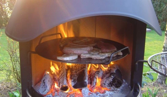 Die Girse Steakpfanne mit einem Durchmesser von ca. 45 cm ist aus solidem, geschmiedetem Stahl gefertigt. Sie wird einfach mithilfe der Schwenkhalterung statt des Grillrostes am Girse Typ 2 Grillkamin eingehängt.