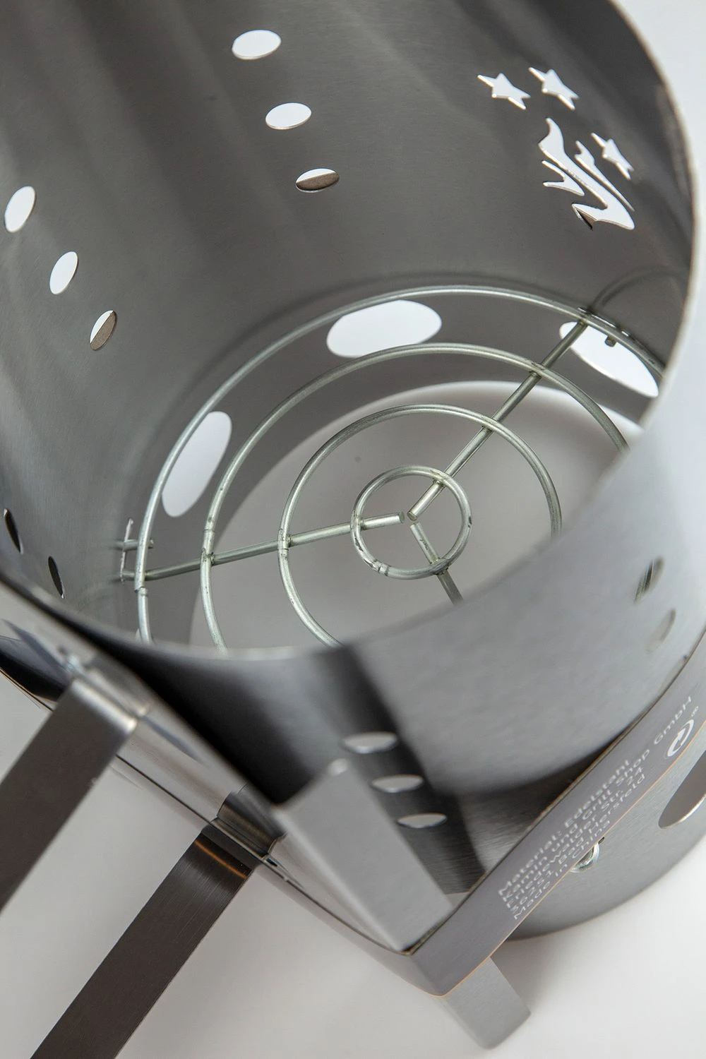 Der Anzündkamin besteht aus Edelstahl, also einem extra starkem Material, damit er nicht wie günstige Modelle nach wenigen Anzündvorgängen schon durchgebrannt ist. Dazu besitzt er noch einen Hitzeschild, welcher die Nutzung einfacher und sicherer macht.