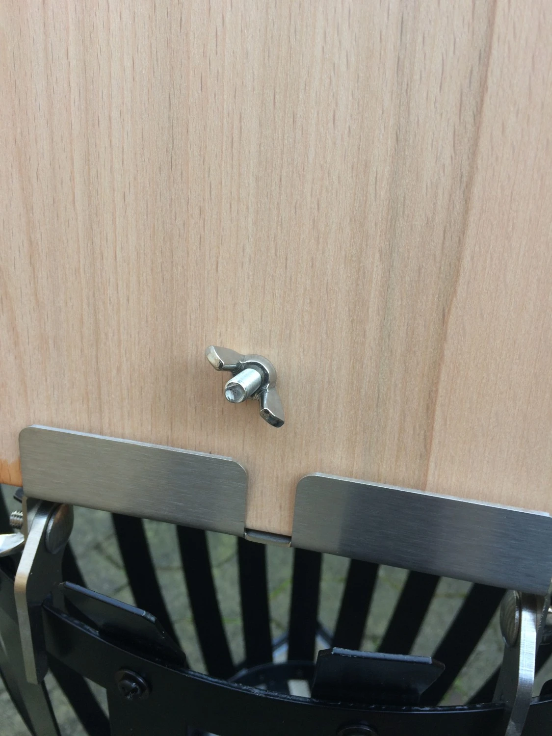 Das Grillfürst Flammlachsbrett aus unbehandeltem Buchenholz besitzt eine Schraub-Halterung aus Edelstahl und lässt sich durch die Universalhalterung an nahezu jedem Grill befestigen.