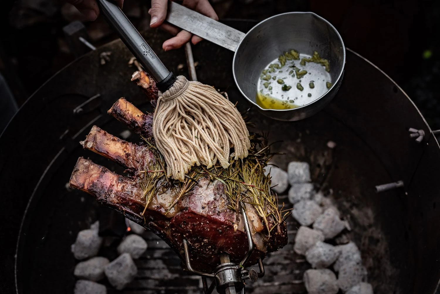 Der Baumwoll-Aufsatz ist ideal geeignet um Grillgut zu „Moppen“. Bei Pulled Pork, Rippchen oder anderen Long-Jobs beispielsweise ist das Moppen und somit das regelmäßige Aufbringen von Feuchtigkeit und Aroma sehr wichtig. Die weichen Borsten nehmen besonders viel Sauce auf und geben diese großzügig wieder an das Grillgut ab.