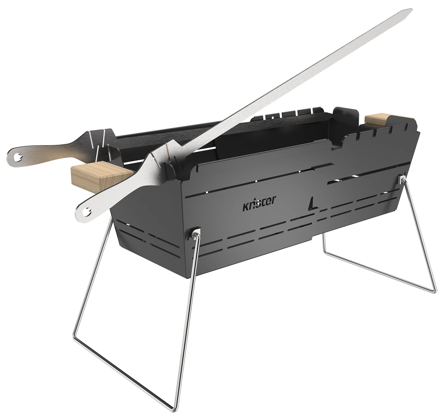 Die beiden XXL Grillspieße passen an alle Knister Grill Modelle. Um die komplette Länge ausnutzen zu können, wird aber eines des ausziehbaren Modelle benötigt.