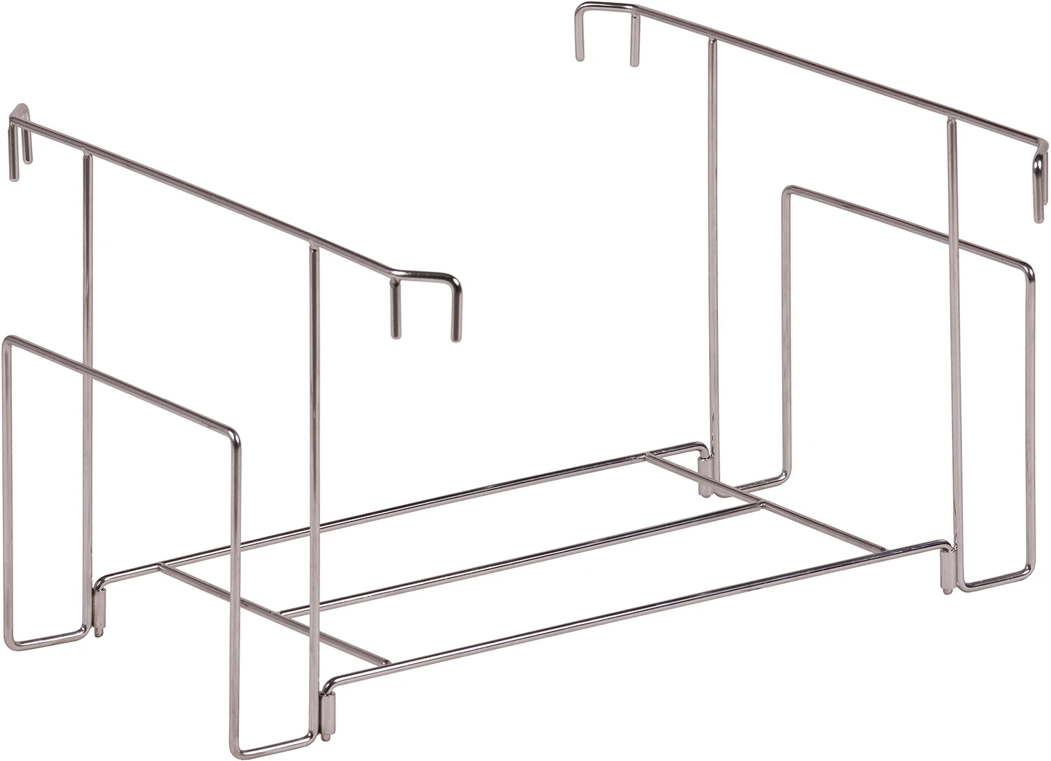 Grillroste aus Edelstahl oder Guss, Deflektorstein, Pizzastein oder Wokhalter finden übersichtlich Platz, da der Halter direkt unter dem Grill in das Gestell eingehängt wird.