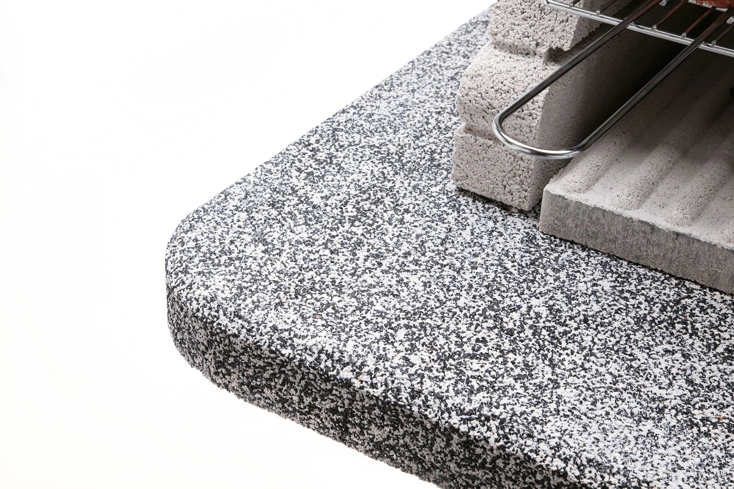 Alle nicht durchgefärbten Bauteile des Grillkamins sind aus einem besonderes robustem und feuerfestem Betongemisch hergestellt. Damit während des Transports keine Schäden entstehen, sind die Bauteile nicht gestrichen oder anderweitig behandelt.