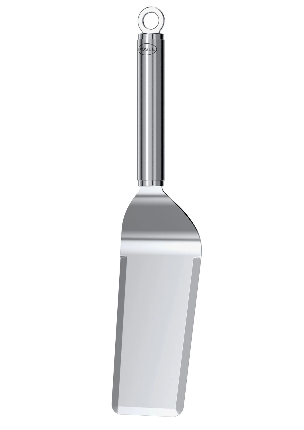 Komplettiert wird der Plancha Spachtel von Rösle von einem massiven, runden Griff, der am Ende mit einer praktischen Öse zum Aufhängen ausgestattet ist.