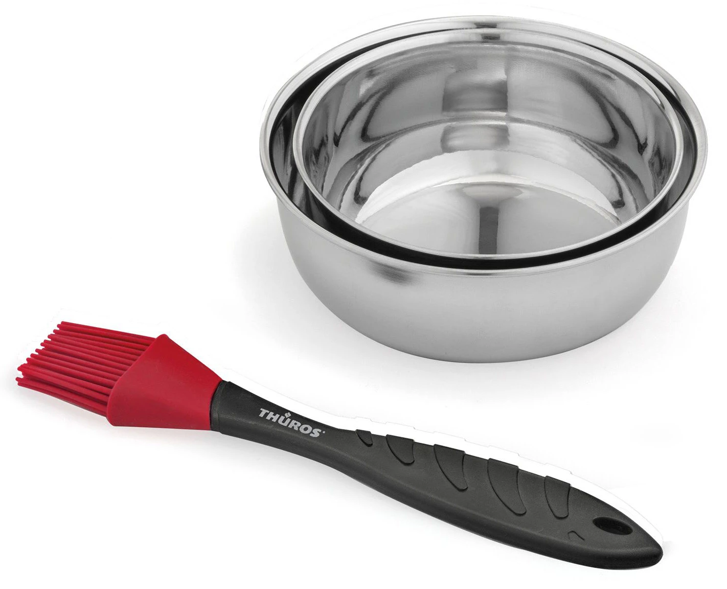 Mit dem Thüros Maninierset geht das Marinieren und Glasieren Ihres Grillgutes leicht von der Hand. Das praktische Set beinhaltet zwei unterschiedlich große Schalen für die Marinade und einen Pinsel mit Silikonborsten.
