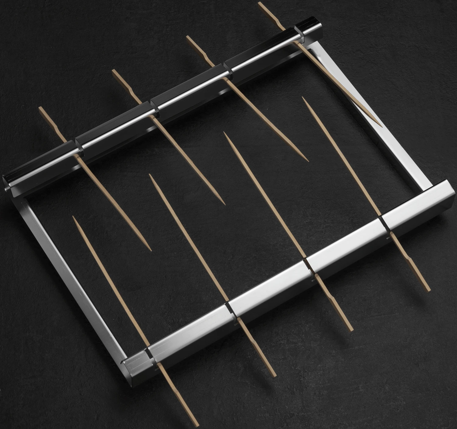 Der Thüros Spießaufsatz ist extra für die Verwendung auf dem Thüros PRO1 Tischgrill konzipiert wurden. Im Lieferumfang sind bereits 150 Bambusspieße enthalten, die einfach von beiden Seiten in den Aufsatz eingehängt werden können.