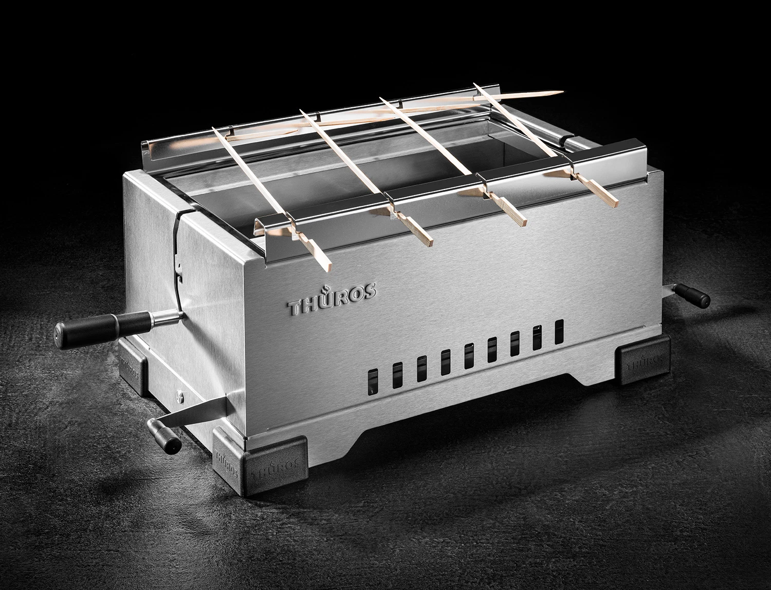 Freuen Sie sich auf leckere Grillspieß-Kreationen, die Sie ganz einfach direkt am Tisch zubereiten können – mit den Thüros Spießaufsatz für den modularen PRO1 Tischgrill.
